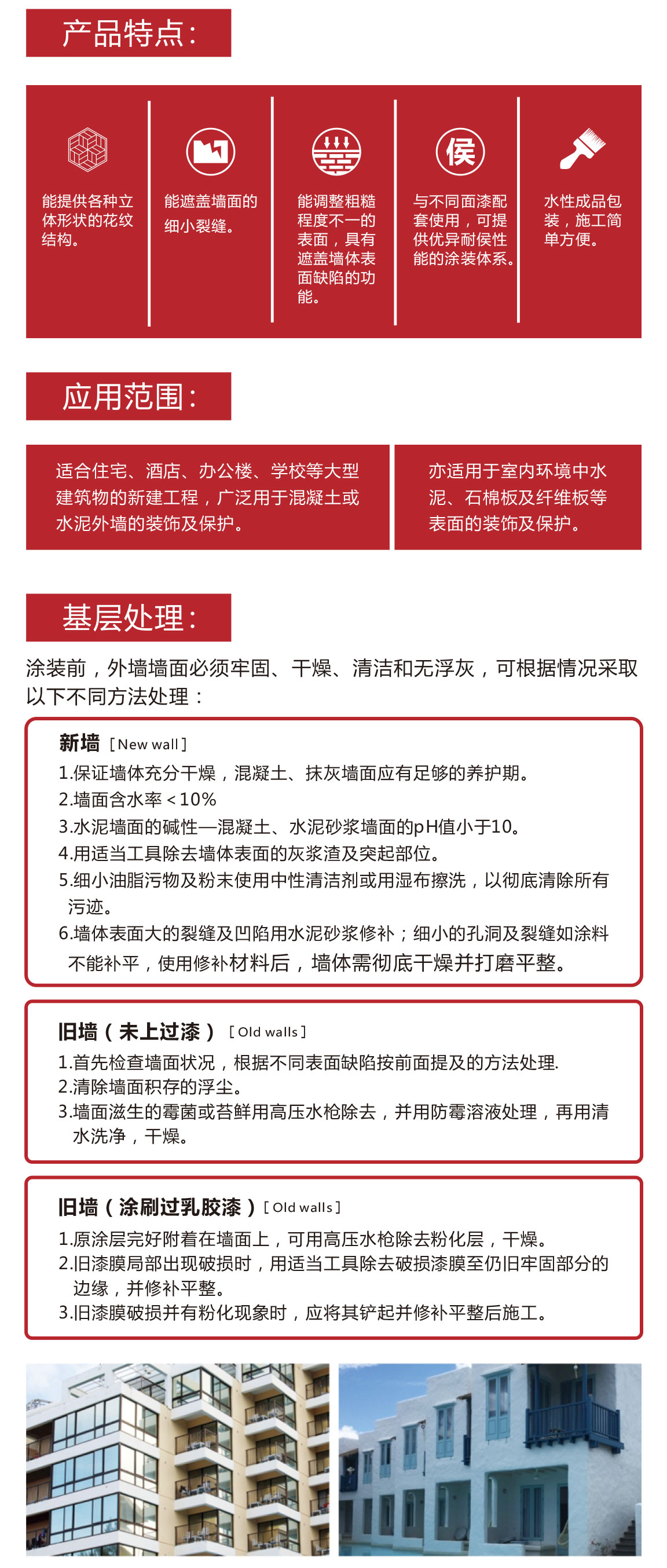 特殊改性的丙烯酸類(lèi)中層料,能為墻體提供立體裝飾效果。